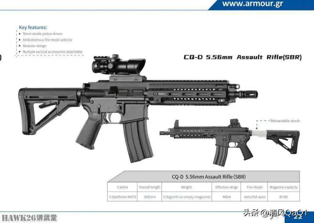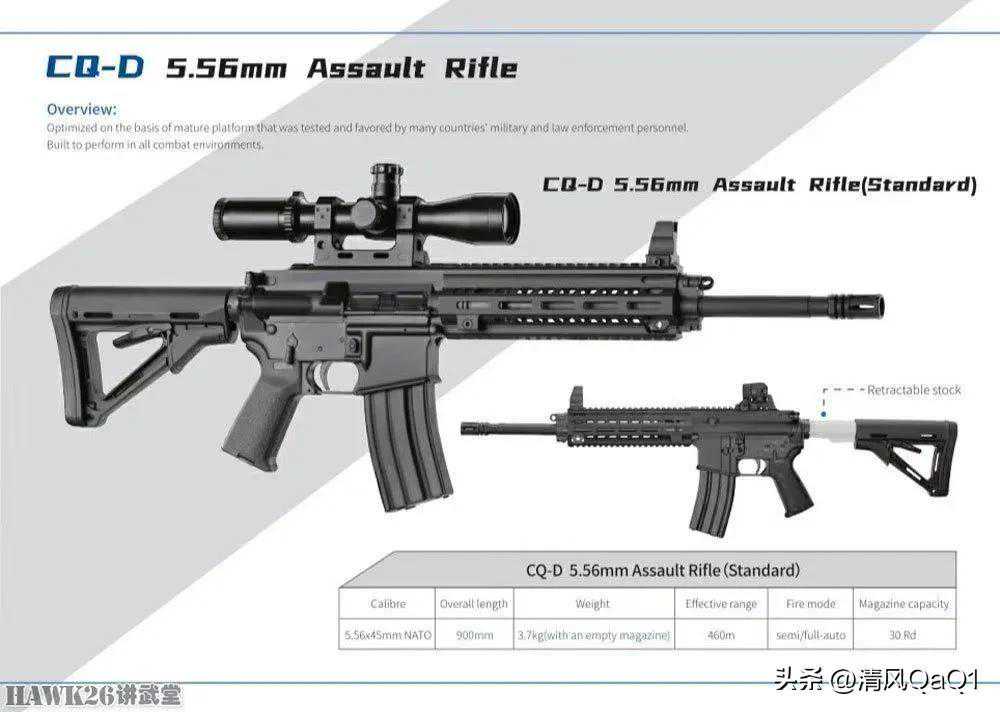 CQ-D步枪,口径5.56×45mm。与此前推出的CQ系列步枪不同的是,该枪改用活塞短行程自动方式。