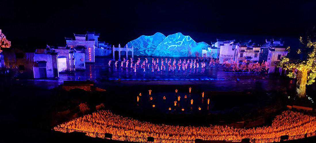 《梦里老家》是江西省卓越的大型山水实景演出,是一台融艺术性、震撼性、民族性于一体的视听盛宴,展现了徽州人的历史和文化,填补了婺源夜间休闲旅游市场的空白。其投影系统设计、安装与调试工作由中清映业集团负责,配备了科视ChristieRoadsterS+22K-J、RoadieHD+35K投影机、CrimsonWU313DLP激光投影机和DWU2022-HS1DLP激光投影机,将文化、艺术和技术完美融合,把高度逼真的画面投映在各种舞台道具上,共同构成主舞台的背景,增强了现场表演的效果和舞美艺术性。