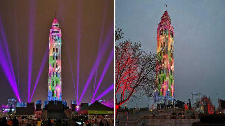 昵称为“中国版的大本钟”的鹤壁钟楼是鹤壁市的地标之一。20台科视Christie®HS系列1DLP®激光投影机为钟楼打造出绚丽的灯光秀演出,成为鹤壁市民夜晚打卡的热门景点。这项工程由中清映业集团负责。灯光秀的高品质投影为中国中北部地区的大型文化活动立下了新标杆。