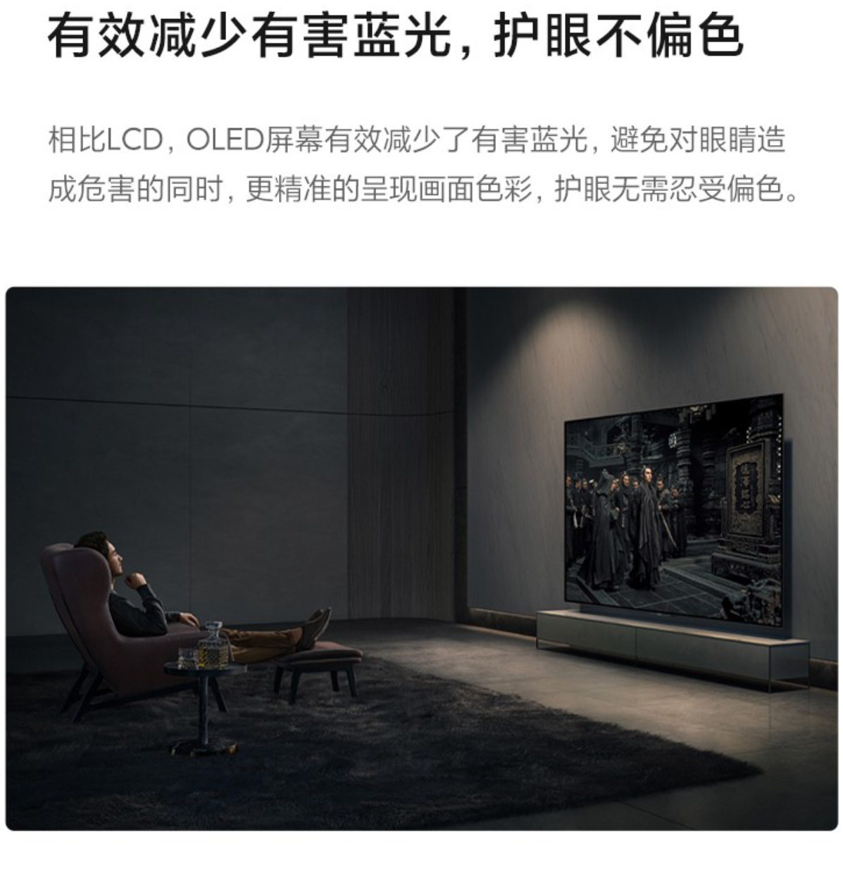 另外,小米电视6OLED采用了无闪烁的DC调光,即使长时间使用也不易产生视疲劳,可以有效保护视力。