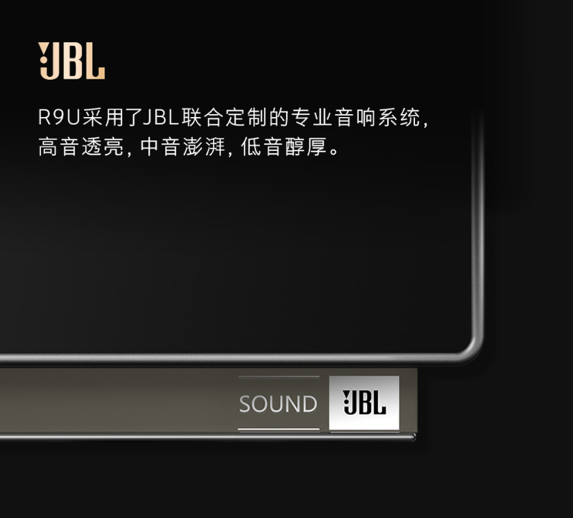 ▲另外,这款创维65R9U还配备了JBL的音响系统,可以在一定程度上代替回音壁,既帮助电视柜更整洁,又帮助用户节约预算。
