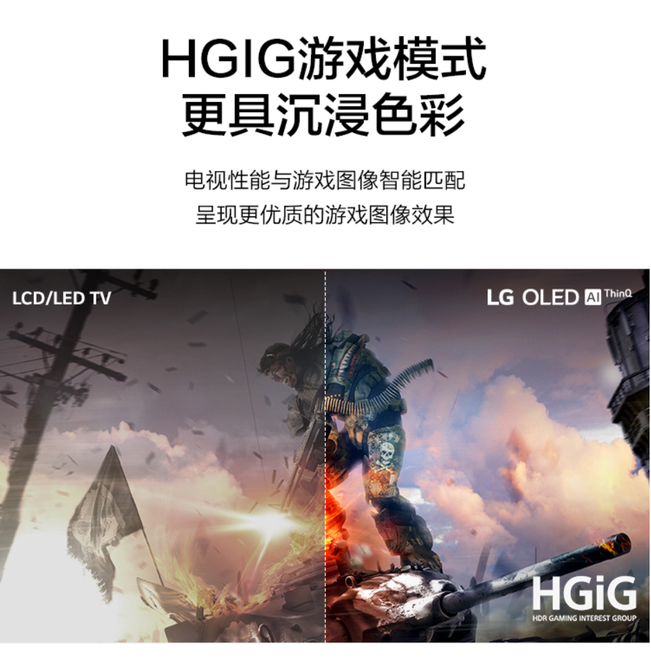 ▲游戏画面方面,LG48C1提供了HGIG游戏模式,可以智能调整画面参数以提供更好的游戏画面效果。