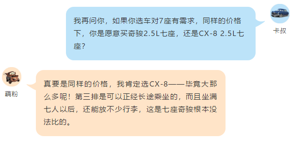 还有,轮胎配备——再次与CX-5完全一样,这同样使得CX-8的轮胎尺寸是所有中大型SUV里最小的,小到与主流紧凑SUV一致。