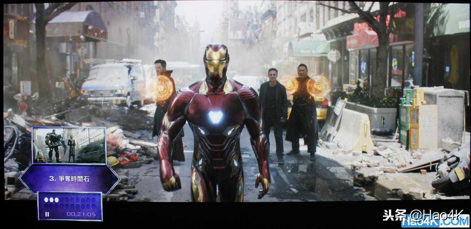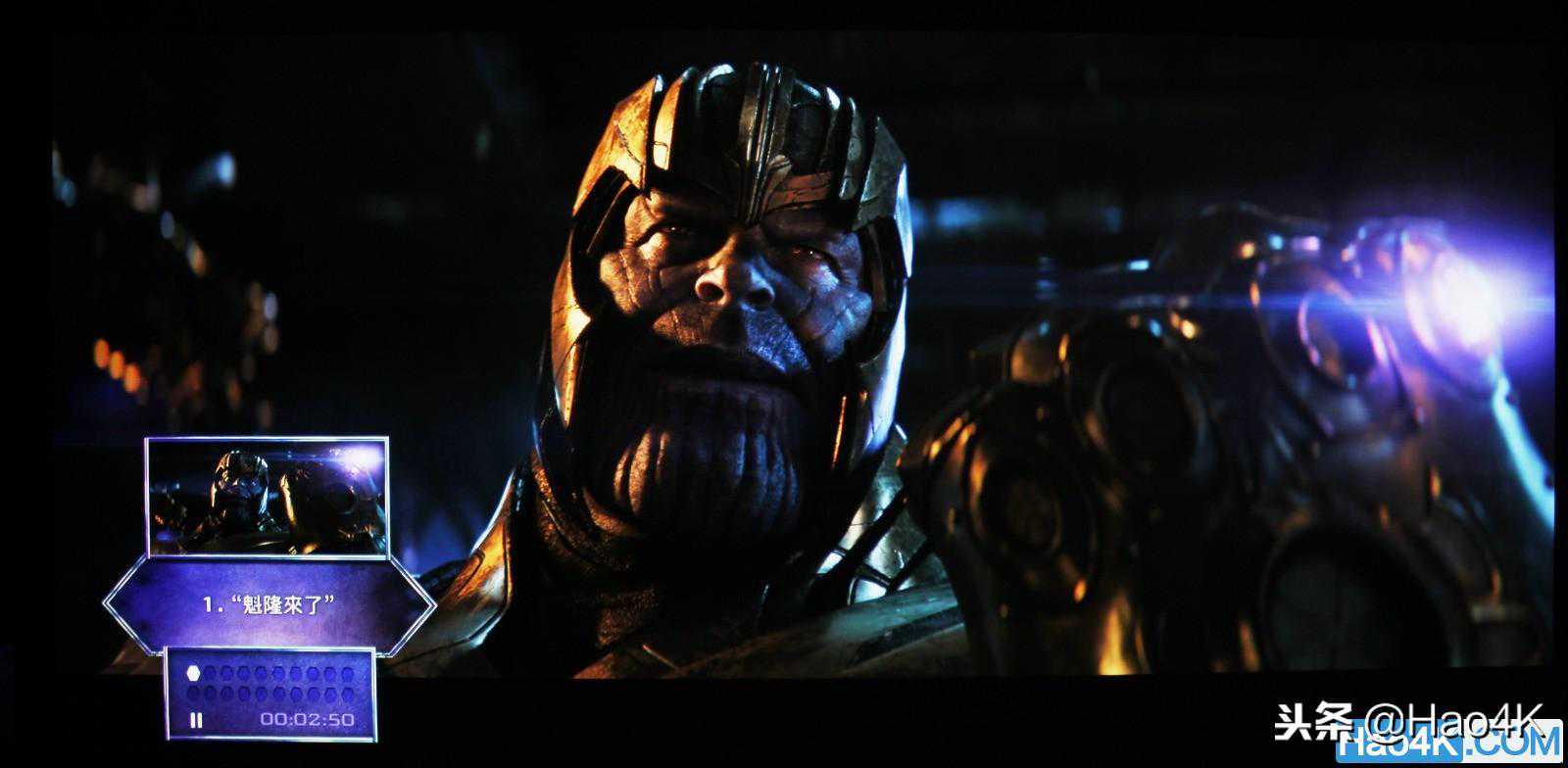 小编将UHL55放在茶几投出一个大约70吋的画面,在自动对焦的帮助下很快完成设置,小编先用AvengersInfinityWar第一幕来试一下,UHL55在未有正式投出画面时给小编的感觉是灰,真是很灰,当时心想,这个质素怎样写?但从黑画面到太空船出现,小编开始见到画面上的暗位的细节,再到船仓的火光、躺在地下的尸体再到Thanos出场的背光画面,小编不禁哗了一声出来。UHL55投出来的画面色彩十分讨好,而光暗也分明、线条锐利度都交足功课,跳到Thonas两名手下到地球的一幕,IronMan的新战衣的十分立体而Spiderman战衣的红色也十分抢眼。小编心里已经不禁在想如果购入此机应该如何摆放好。