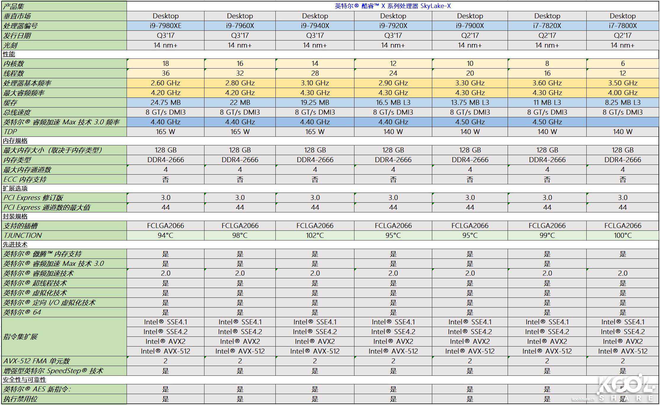 1、SKYLAKE-XRefresh使用14nm++工艺制造,SKYLAKE-X是14nm+。