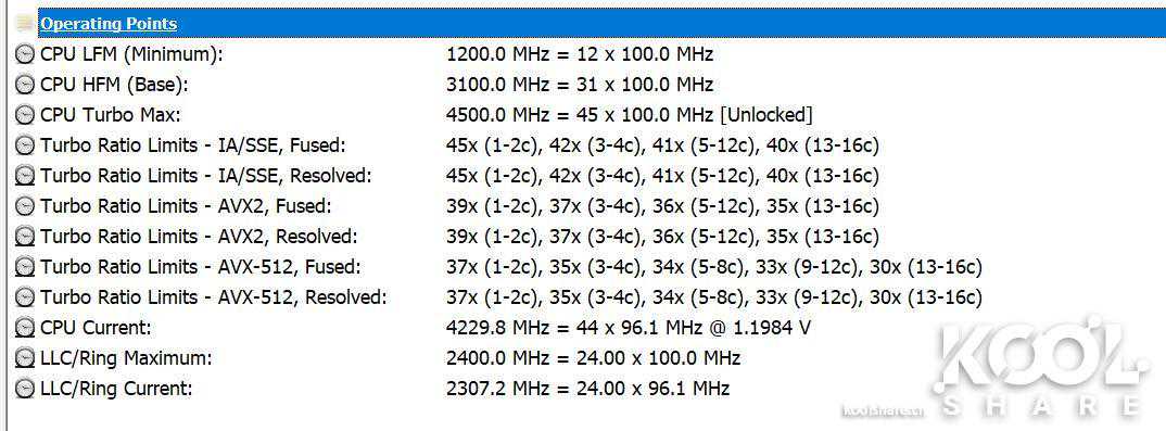 而使用HWINFO可以获取三个频率参数,SSE主频、AVX2主频、AVX512主频,那么I99960X的各种主频如下: