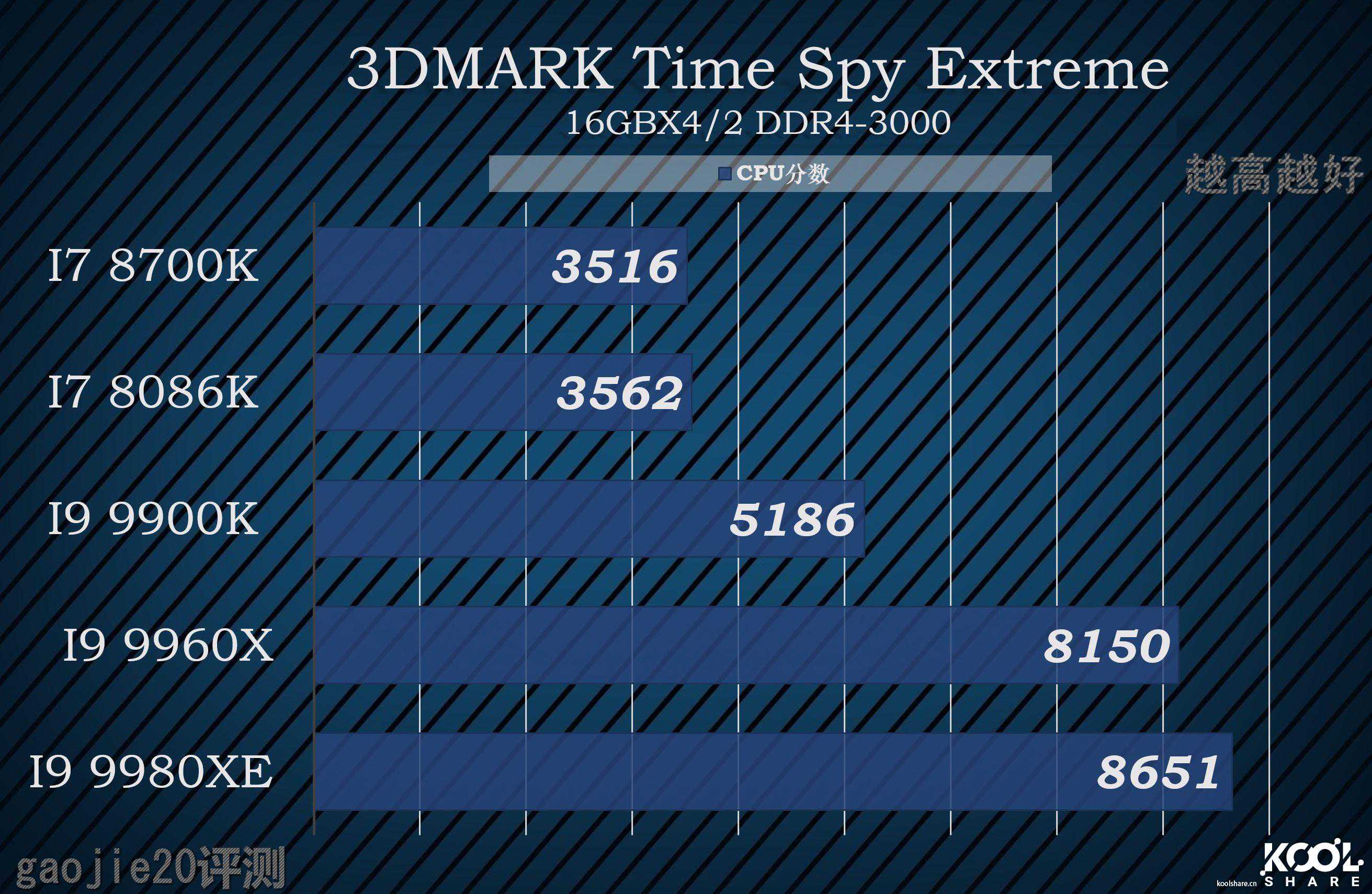 这个测试主要考验的是主频,其次才是核心数,I99900K还是最高总分获得者,其实这个软件里面,有个I78700K都完全足够了,换成I99980XE其实得到的性能收益是非常小的,完全没有性价比可言。