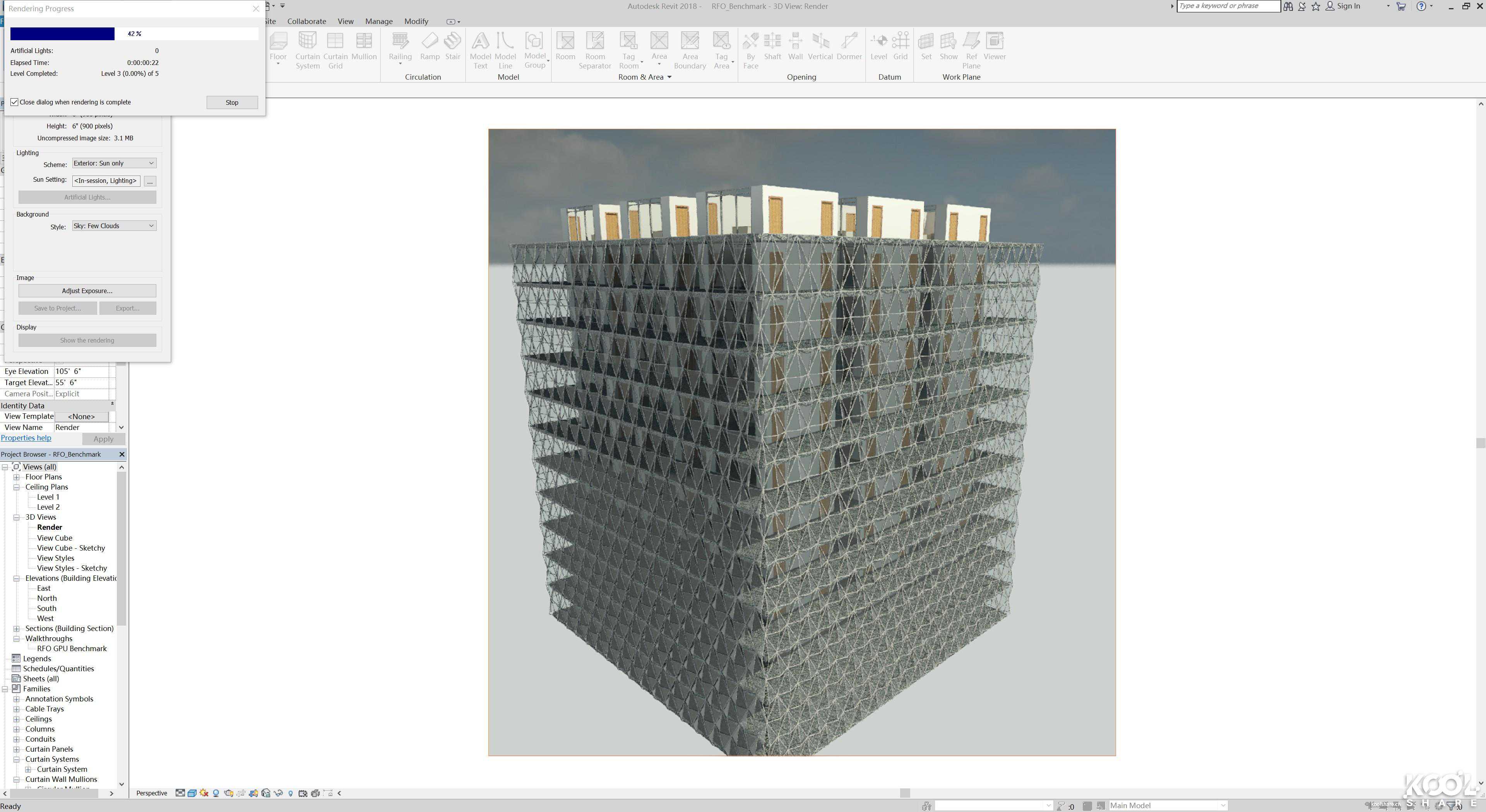 我使用了的REVIT论坛出品的进行测试。目前的更新已经支持Revit2018乃至2019,使用其中“Full_Standard”作为测试标准。在RFO基准测试中,结果分为以下几类: