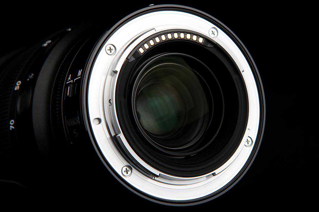 尼克尔Z24-70mmf/2.8S的镜头设计结构为15组17片,其中包括2枚低色散ED镜片和4枚非球面镜片,并采用了尼康传统的纳米结晶涂层,及新的抗反射高清(ARNEO)涂层。该涂层能有效地减少直射光的反射,与纳米结晶涂层结合使用,可在整个可见光光谱内提供低反射。在镜头的最前面与最后面的镜片采用了氟涂层,因具有良好的防污性能,使污渍难以附着,对于附着的污渍也能轻松擦除。镜头最小对焦距离仅0.38m。滤镜直径为82mm。