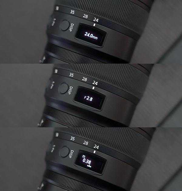 尼克尔Z24-70mmf/2.8S一大特点就是在镜身上搭载了一块信息面板,用户可以在不查看取景器的情况下通过镜头信息面板查看各项参数。