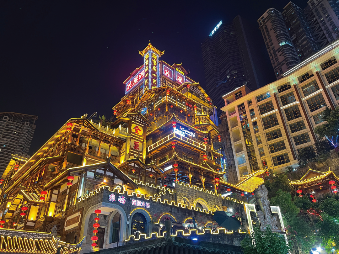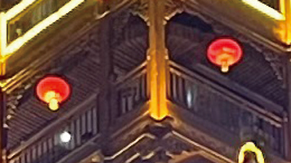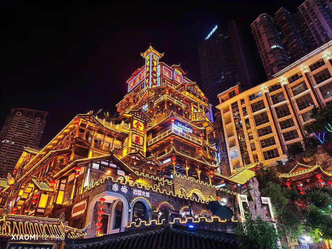 最后,终于到了夜景样张的对比环节,在这一年中,我们在太多发布会上听到了夜鹰、夜枭、夜X的算法,但到底它们的夜景表现如何呢,还是得实拍看一下。我们选择了重庆著名景点洪崖洞进行拍摄,这也是外地游客到重庆必来的景点之一。相较其他地方的夜景,复杂的木质建筑和多样的光线相当考验一款手机的拍照能力,接下来让我们看看这些手机在洪崖洞的考验下能够取得怎样的成绩吧。