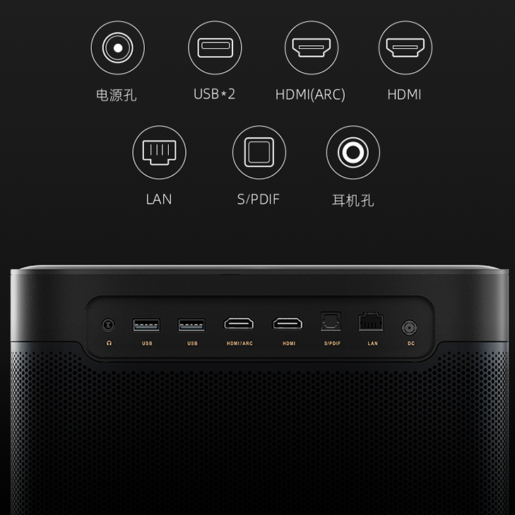 其具有两个10W扬声器,音质洪亮。接口丰富,比如还有HDMI(ARC),方便连接回音壁,还是十分丰富的。还有MT9669核心处理器,3GB内存,64GB存储,双频WiFi,并且无开机无广告。