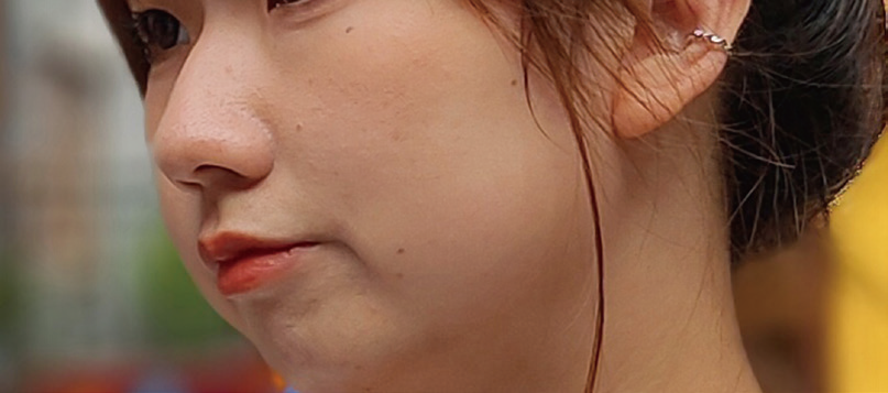 单纯就画面表现而言,旗舰机型们在用1x模式拍摄人物时,成像素质较为接近,拥有35mm焦距主摄的努比亚Z40Pro和中兴Axon40Ultra略微可以得到一点点景深和虚化效果。其他机型想要获得自然的虚化,则需要进一步打开人像模式,利用AI处理来进行抠图和虚化。而在这两款使用相同主摄传感器的机型对比中,努比亚Z40Pro在美颜部分更加出彩,适当的增白和模糊遮住了模特面部的细微瑕疵;中兴Axon40Ultra更靠近真实,脸部的细节和颈部的细纹都一览无余,就看你喜欢哪一种了。