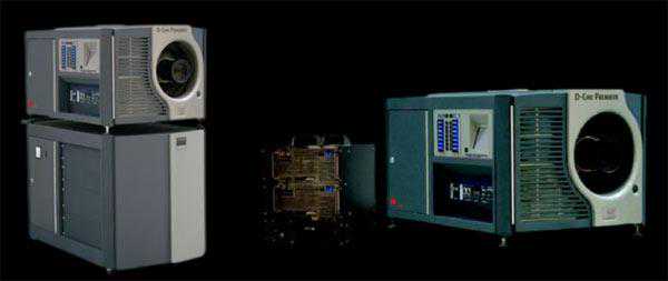也就在这个时期,集成芯片技术的不断进步,巴可相继推出了基于M25技术的DP100和DP90(见下图)。在技术上又一次进行了重大改进,放映机在安装和使用的方便性、影像质量和光效上都有长足的进步,色彩深度比HDTV高40%左右,基本达到胶片的水平。同时改进后的光路设计,搭配与氙灯生产厂合作研制适合数字放映的超短弧氙灯,比同样功率的普通胶片氙灯亮20%-30%。