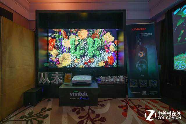 激光电视本身是采用激光光源的电视类产品,其色彩表现好、亮度高,同时还具有光源寿命长的特点,在电视领域中,是当前行业销售的热点。Vivitek这次带来的电视产品不仅是采用了激光光源,而且DH765z-UST还具有超短焦功能,可以实现在半米的投射距离处投出100寸的大屏画面,现场演示效果足够震撼。