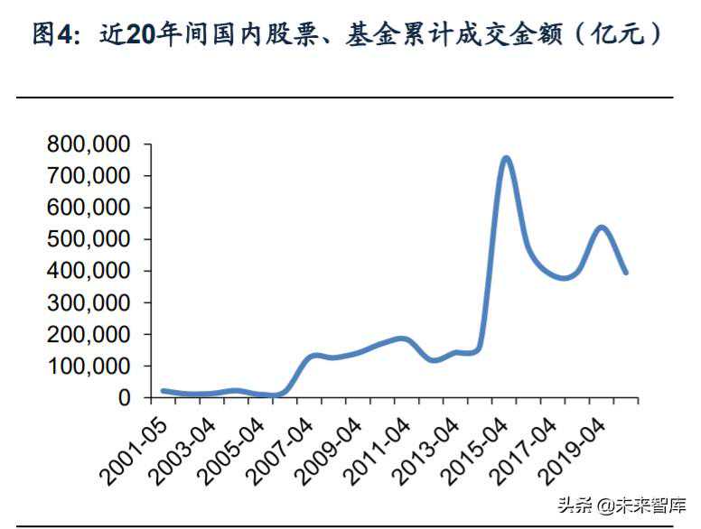 国内市场实质性的进步。从1995年1月1日实施T+1制度以来,市场已经经历了26年的时间。截至1995年沪深两市共上市322只股票,而时至目前国内全部上市公司数量突破3850家,截至2020年5月,总市值规模达到64.3万亿元。经过26年的发展,国内的市场已今非昔比,在全球市场中占据一席之地,成为极具影响力的市场之一。同时,近20年间国内股基成交金额也实现较大突破,2001年1-5月累计成交2.11万亿元升至2020年1-4月累计达到了39.44万亿元。