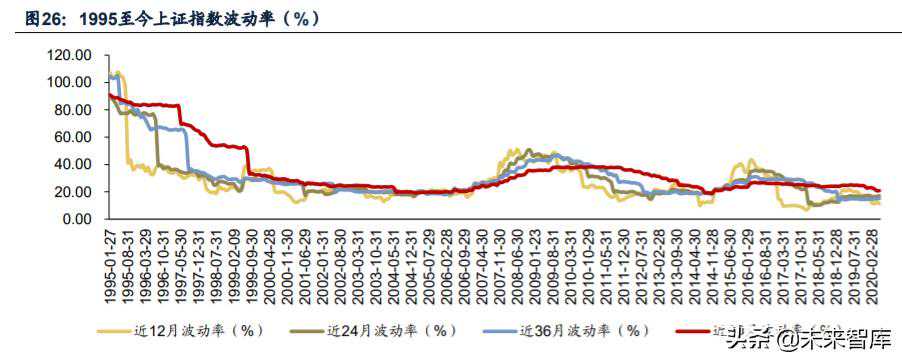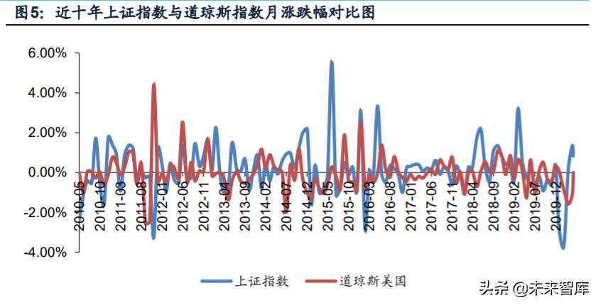 市场波动性已经较低。从近十年的股市月涨跌幅来看,上证指数近十年的平均月波动率为0.18%,而道琼斯指数为-0.02%,整体上国内市场的波动率已处于较低水平。
