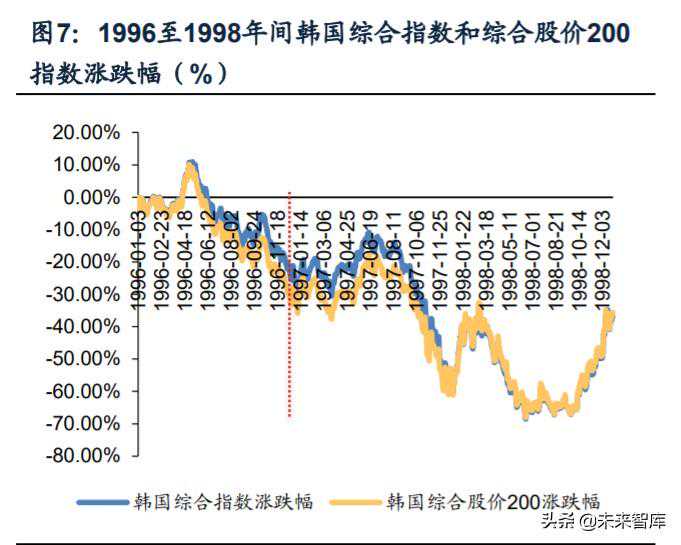 另一方面,股票市场交易制度向股指期货交易制度看齐。1996年5月,韩国证券交易所正式开始KOSPI200指数期货交易,但此时股市仍采用T+1的交易制度,股指期货与股票市场存在交易制度的不匹配问题。1997年1月,韩国开始实施T+0交易制度,在之后的一段时间内,韩国综合指数和韩国综合股价200指数波动较大,在三月份时韩国综合指数多次跌破650点,于3月24日达到最低点617.26,随后开始稳步上涨,于6月17日达到高点792.29,涨幅高达28.36%。