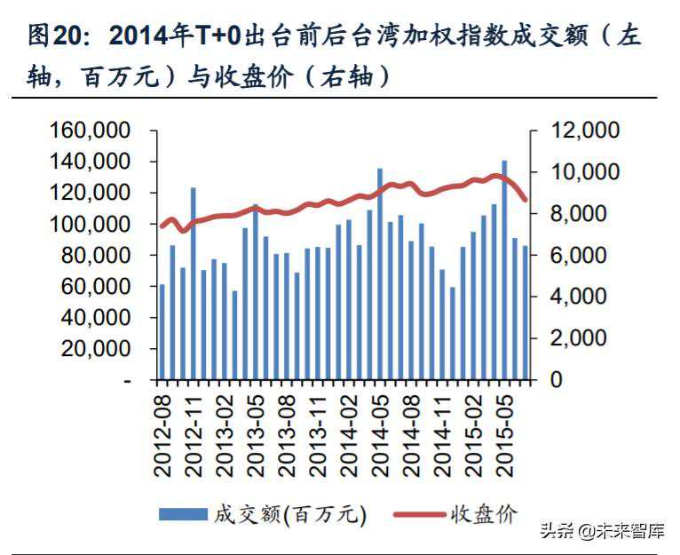 2014年1月6日台湾证券交易所正式放开现金账户有价证券先买后卖的T+0制度;后续,继续开放先卖后买的T+0交易制度,台湾金融保险指数自2014年5月小幅上涨14.83%。