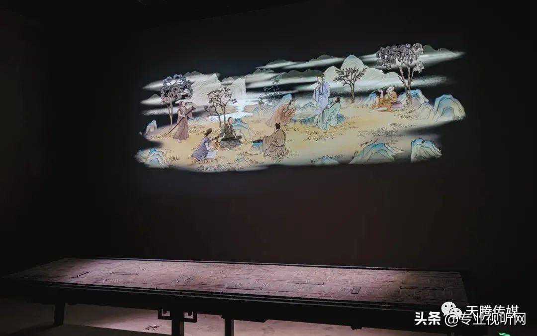 《山林逸士》以“竹林七贤”为故事原型,通过2台RU70983工程投影机所呈现的影像,与294块古墓砖拼嵌而成的竹林七贤与荣启期砖画构造而成。