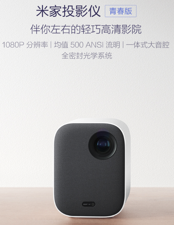 首先是米家青春版投影仪,分辨率为1080p,投影的均值亮度为500ANSI流明,并且配置了