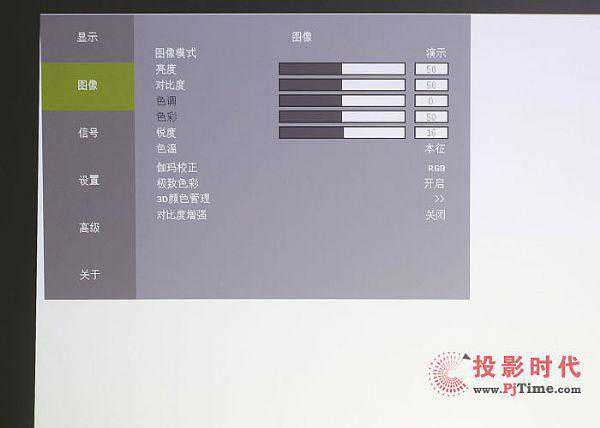 信号菜单包括自动检测信号、色彩空间的选择以及空白屏、自动同步等选项的选择,使之达到理想的画面。