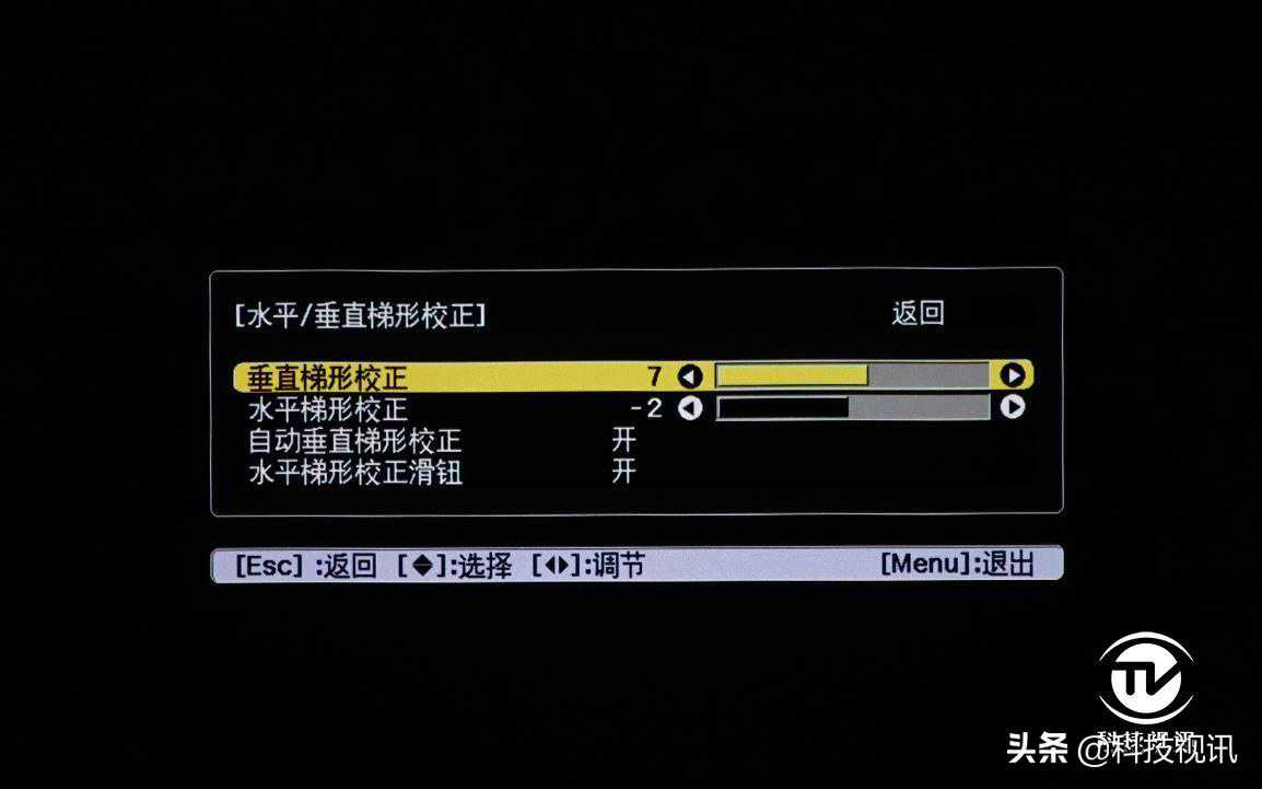 为了更好地还原投影机的画面,科技视讯在本次评测中特此采用了大尺寸幕布,屏幕投放面积达到了100英寸左右。爱普生CH-TW610投影机能够支持自动梯形校正,开机后屏幕能够自动变得较为方正。
