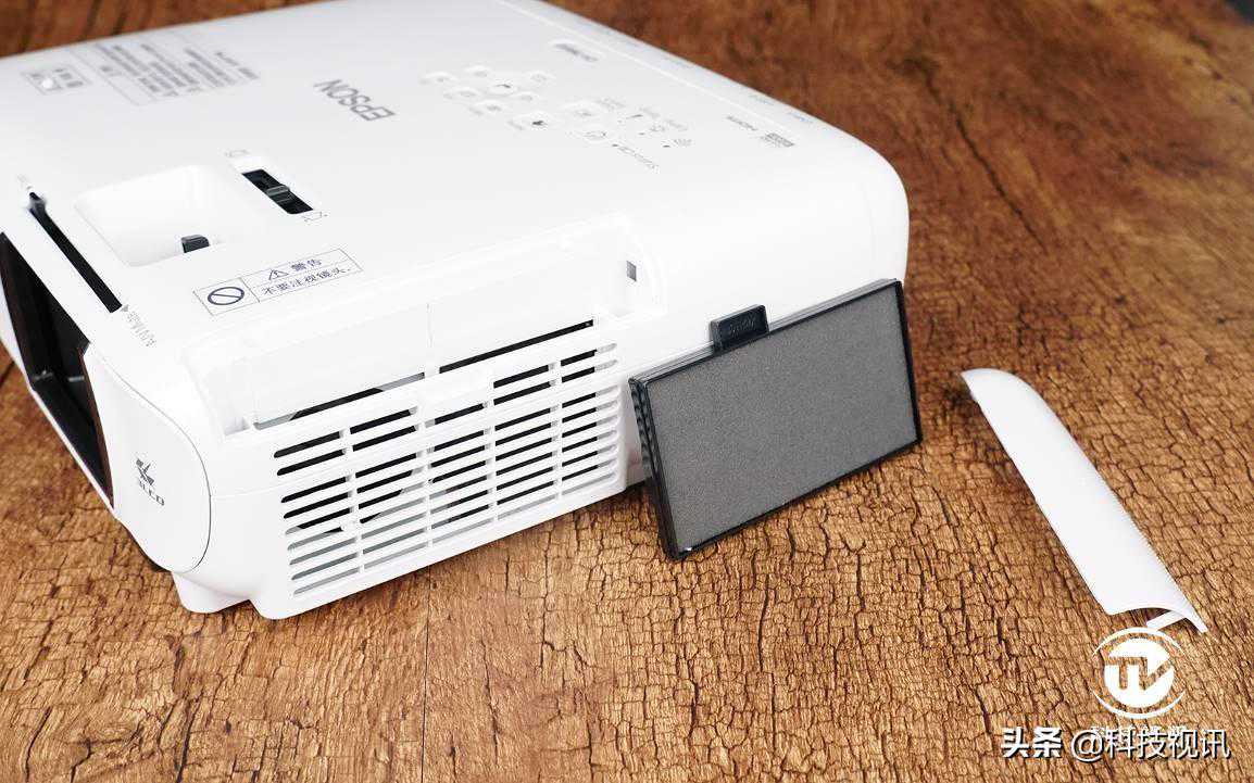3LCD投影机内部的光路构造是开放性的,需要定期清灰。所以爱普生特地在投影机的散热进气口设置了过滤网,以阻挡灰尘在投影机内部的堆积。用户在使用过程中只需要定期清理这块滤网,而无需拆卸整个投影机,这个设计也是蛮人性化的。