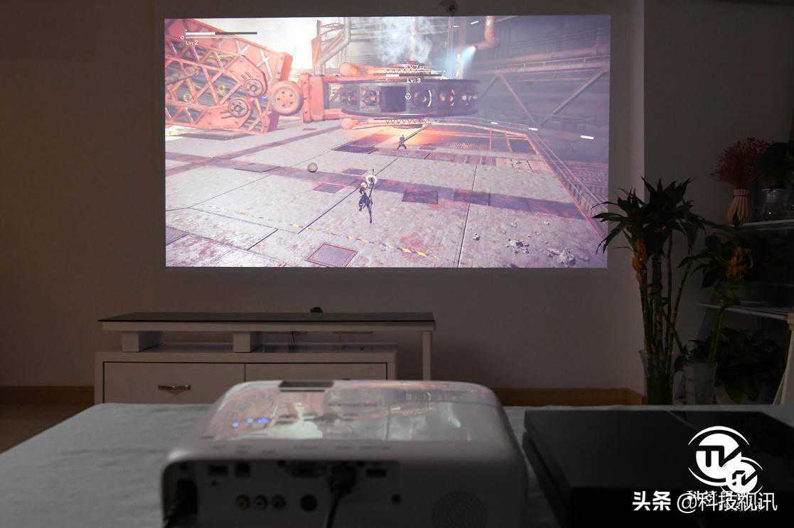 可以看到,得益于充足的投影亮度,爱普生投影机CH-TW610在白天客厅中投放出的画面和晚上关灯时投放的画面差别并不算大。我们可以得出结论,即便是在环境光较为明亮的情况下,爱普生CH-TW610依然可以投射出较为清晰的大屏幕画面。而且这款投影机的使用并不依赖专业幕布,只需要一堵白墙就能够正常投放!