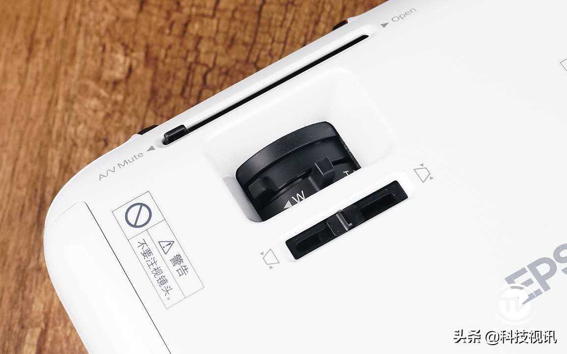 爱普生CH-TW610投影机的镜头位于投影机的右侧,镜头盖可以手动开启和关闭,不用时可以关闭护盖防尘。另外,镜头的焦距也采用手动调节设计,在实际体验中,调焦还是非常方便的,轻轻一拨就能够让图像马上清晰起来。
