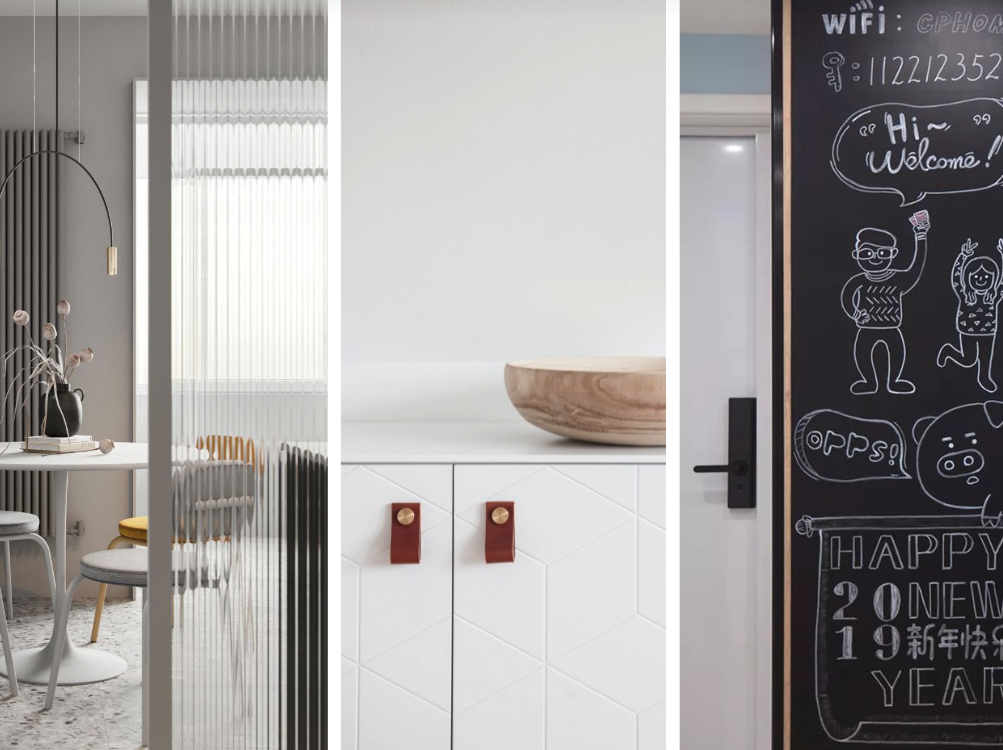 Dividingawallspaceandpaintingwithblackboardpaintcangivechildrenaspacefortheirimagination,anditalsobringsamessagefunctionforbothhusbandandwife.
