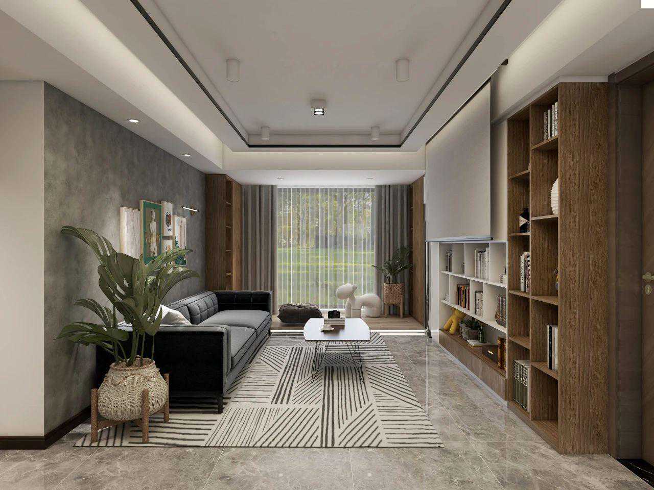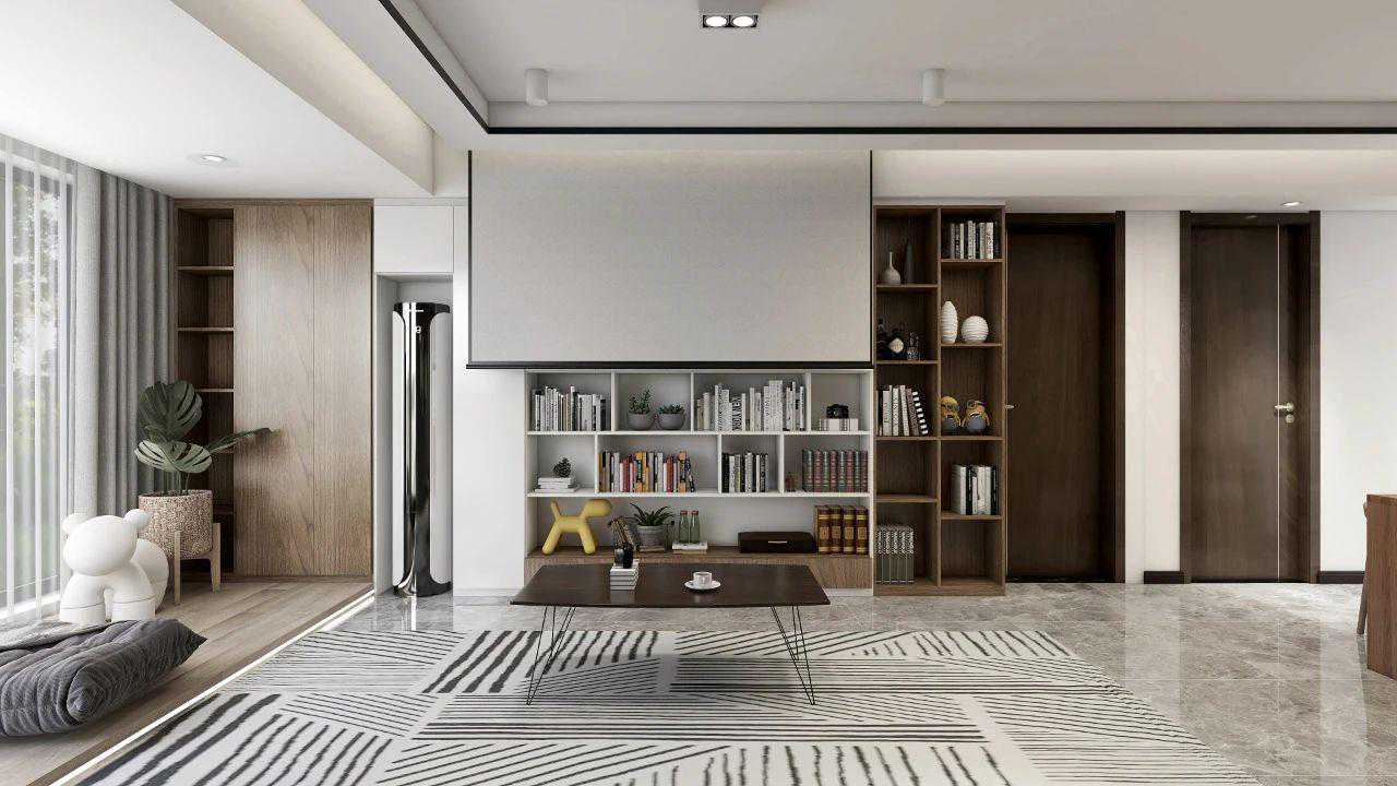 无电视,重新定义电视背景墙,以能容纳书籍和孩子玩具的展示柜,加强可收纳空间;而投影设计则是家庭共同娱乐的方式之一。