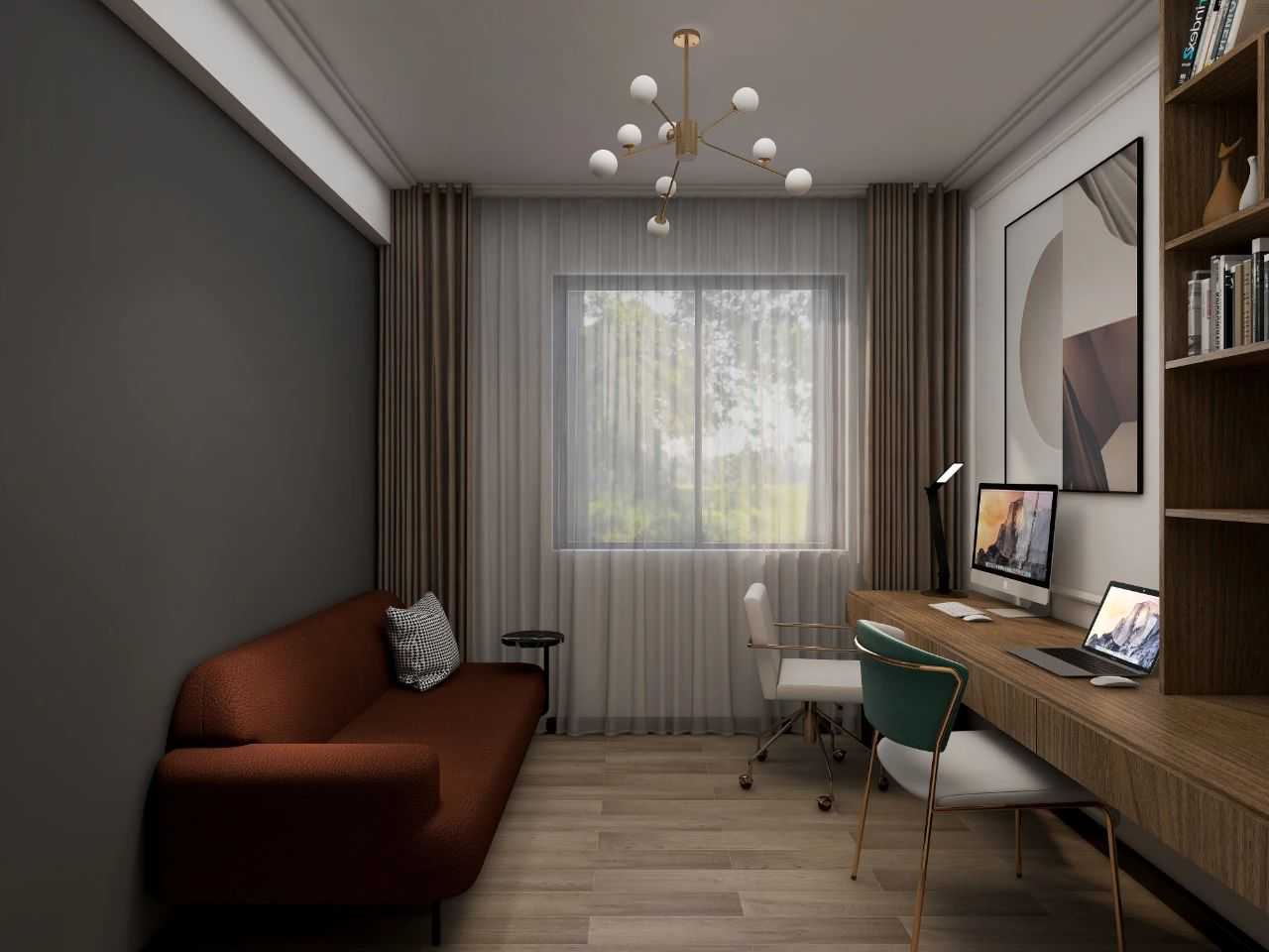 剩余的空间放置一个沙发床,便于需要时可当床使用。