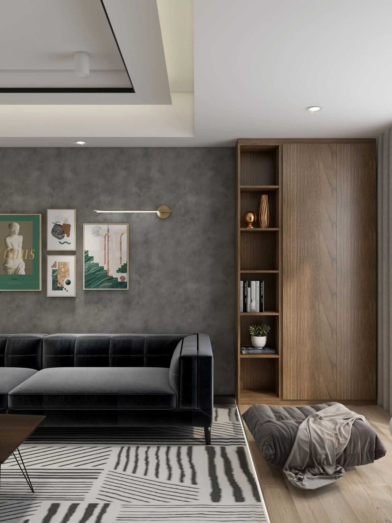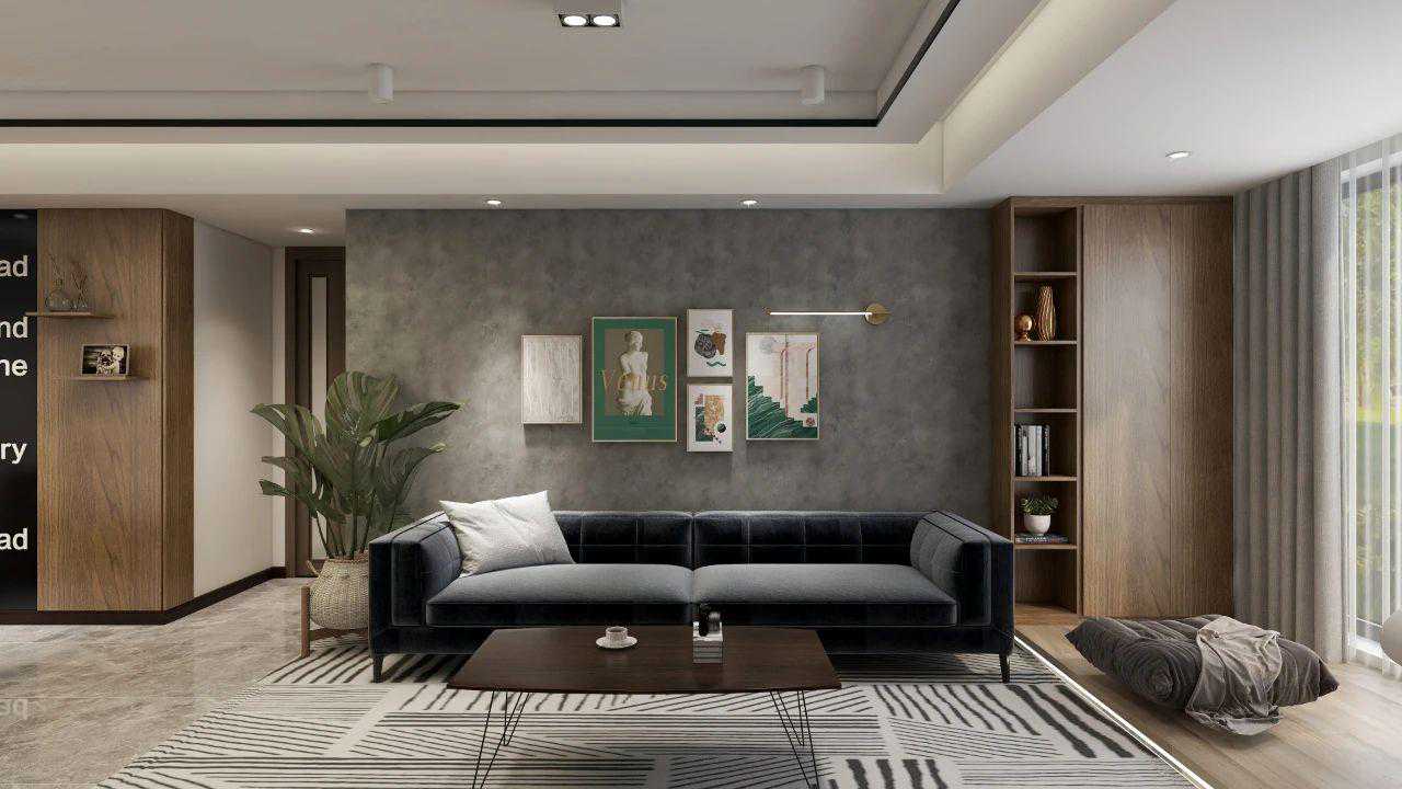 沙发背景墙用灰色艺术漆,在光的折射下,墙面有一种光影浮动的效果,更平添了一份浪漫的艺术情怀。