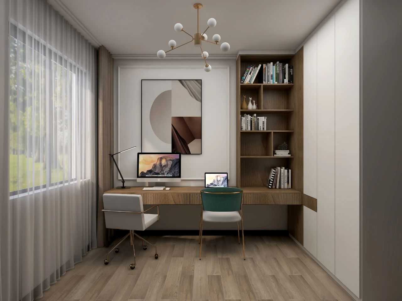 因在家办公时间多,需要舒适的办公空间,所以书桌长度大概有2米多。