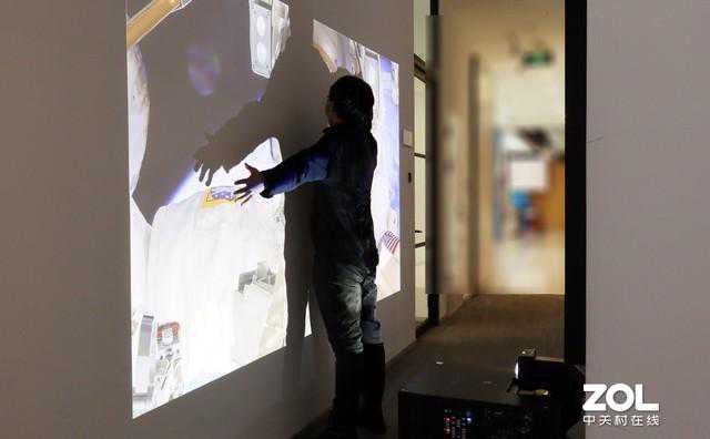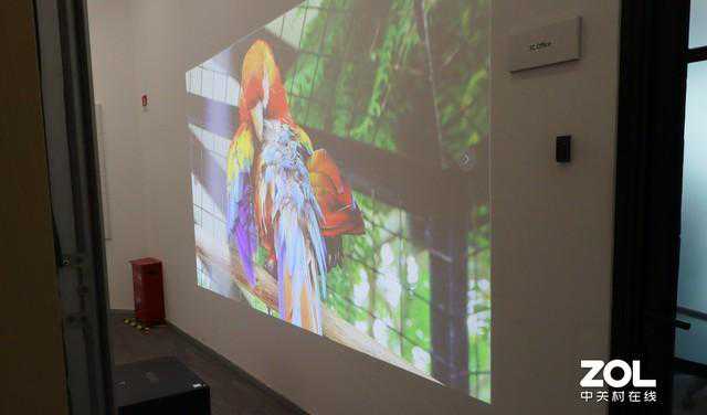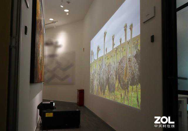 虽然走廊的灯光很明亮,但投影机的画面颜色准确、艳丽,丝毫未受到环境光影响,在实际应用中,如果想在狭小的空间中进行艺术展示、打造背景墙,爱普生CB-L20000U搭配零偏移超短焦镜头的解决方案将会是你的明智之选。