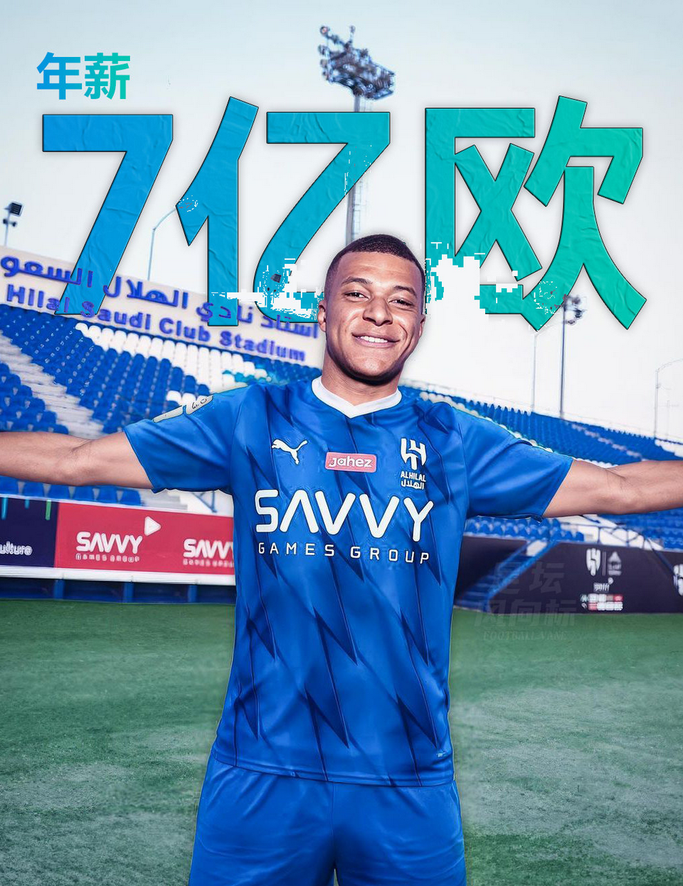 另据CBS记者JamesBenge报道,利雅得新月将提供1年7亿欧的合同,并且允许姆巴佩1年后自由身去皇马。