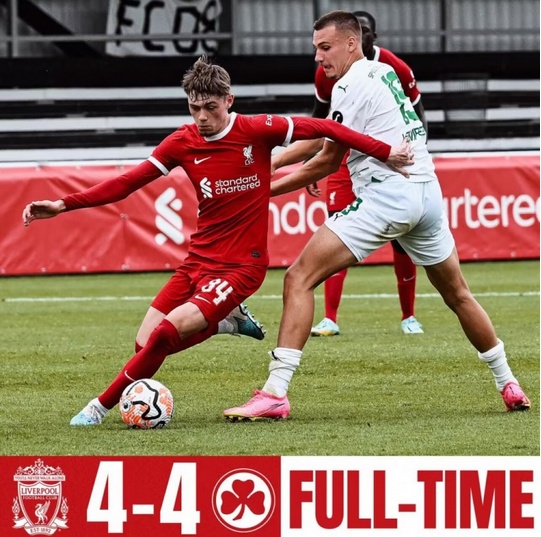友谊赛-萨拉赫1射2传+努涅斯双响利物浦4-4绝平菲尔特