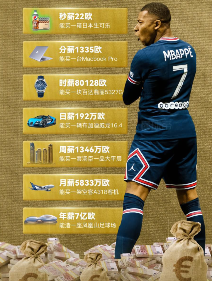 沙特利雅得新月给姆巴佩开出7亿欧元年薪(7.76亿美元)的报价,比新赛季NBA年薪前17名总和还高!