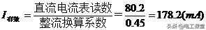 (5)测试数据处理。将第四步测试获得的直流电流表读数除以半波整流换算系数,就是通过负载的交流电流有效值。