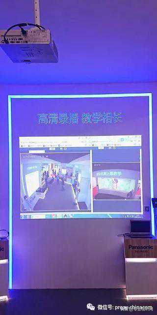 通过高清摄像头,将两个教室进行同屏录播,将录播画面通过松下投影机进行观看。