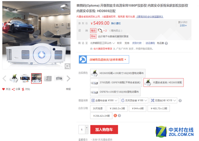 奥图码HD260S能达到3200流明的亮度以及标称22000:1的对比度,即使在室内使用,也不会因开、关灯而让显示效果差距过大。该机内置安卓系统,同时也支持U盘直插,读取文件、浏览网页等都很方便,适合家用。
