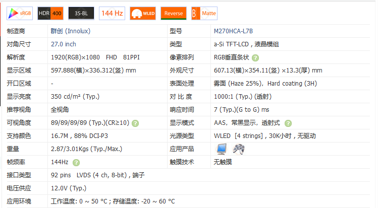 屏幕网查到面板的具体信息如下图