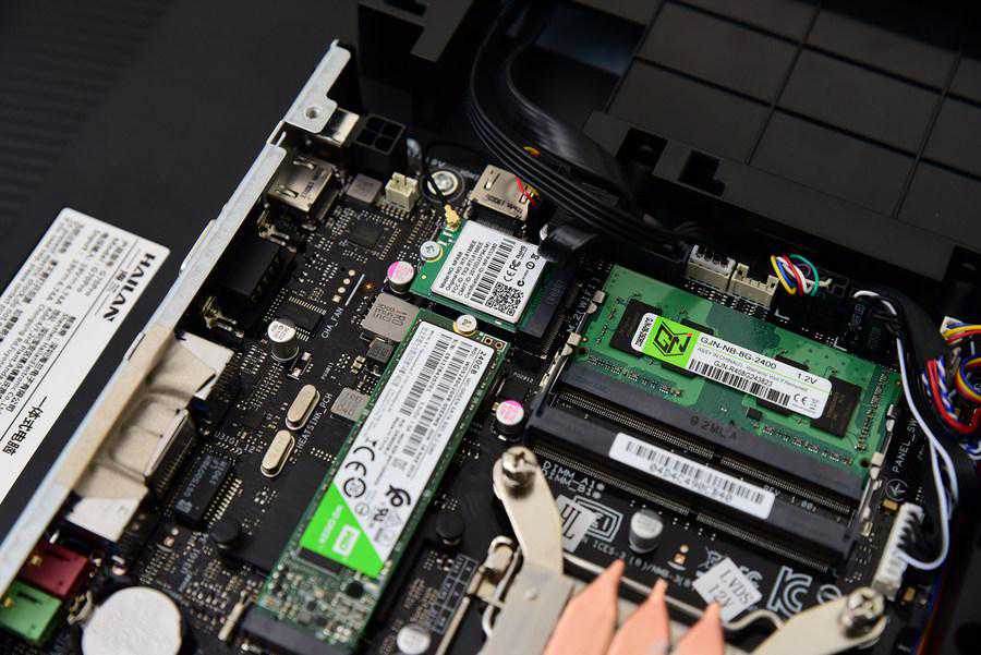 主板部分的布局十分紧凑,主板采用了台系大厂华硕H310,可对内存、CPU、SSD硬盘、网卡等配件进行更换。