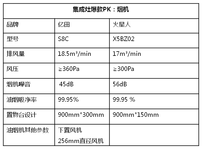 从产品尺寸来看,亿田S8C900(宽)600(深)*1325(高),火星人X5BC900(宽)614(深)*1295(高)。亿田S8C偏高,火星人X5BC偏深。如果厨房可利用深度有限,亿田S8C更节省空间一些(深度600mm)。
