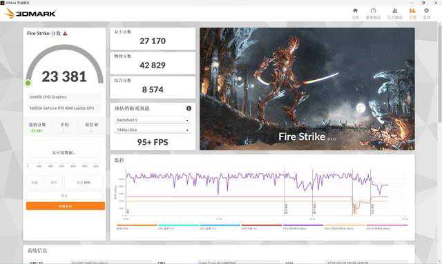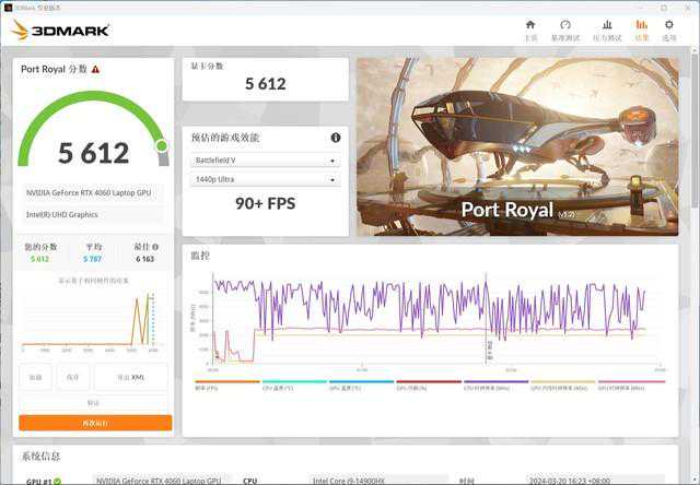 针对图形性能的3Dmark同样有优异表现,FireStrike斩获23381分,TimeSpy获得11326分,还有针对光追的PortRoyal拿下5612分,都意味着这款笔记本在大型游戏和3D建模中发挥超强的实力。