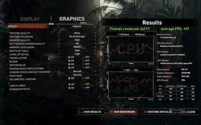 在《古墓丽影:暗影》中,设置2560x1600分辨率,空妖S6在高画质下获得了167的平均帧数,在画质提升至极高之后,平均帧数仍然有157帧,可以说是非常丝滑。