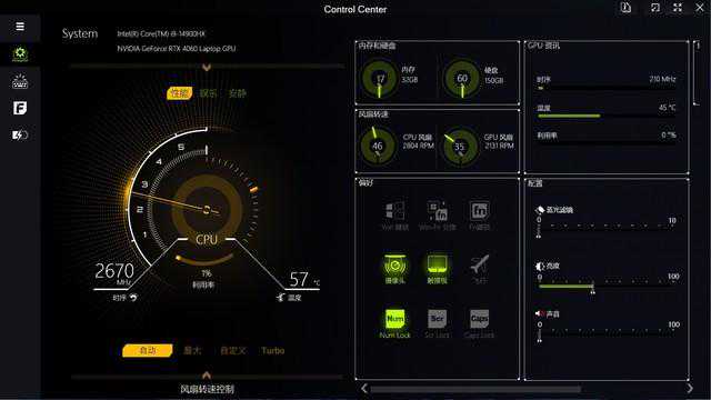 在使用体验方面,空妖S6做的也非常到位,这款笔记本自带ControlCenter控制中心,升级到了3.0版本,用户可以非常高效地管理笔记本的运行状态和散热情况,同时,借助Fn+1快捷键可以方便地让风扇在满速和智能之间切换。