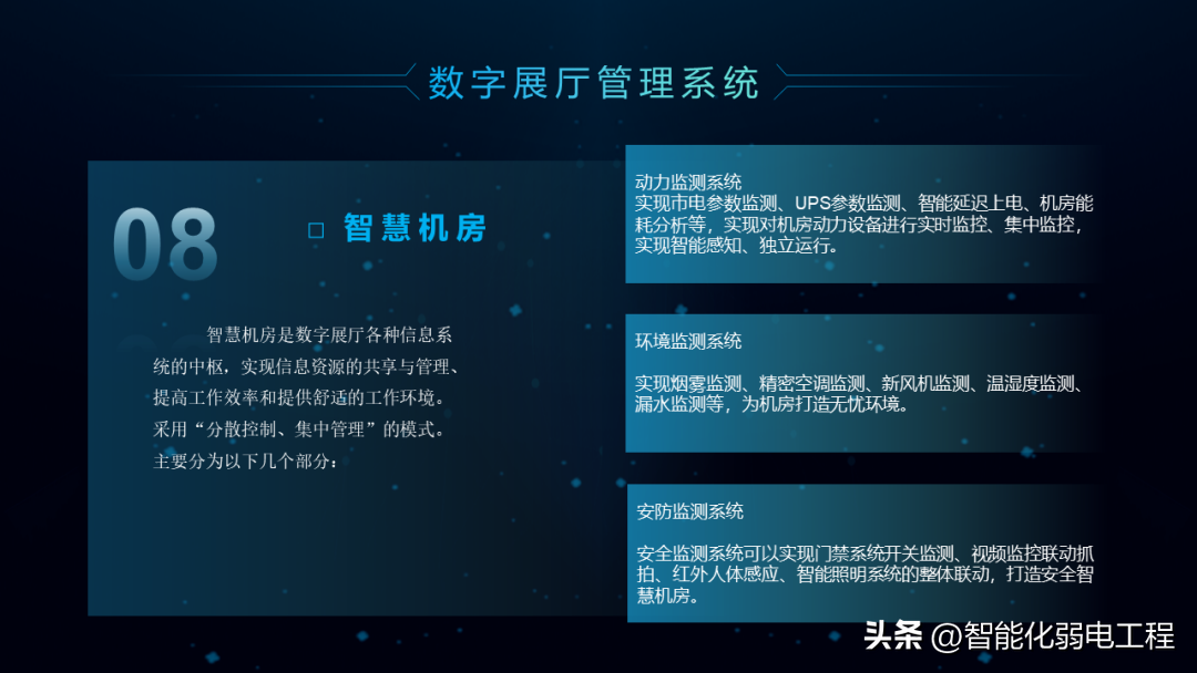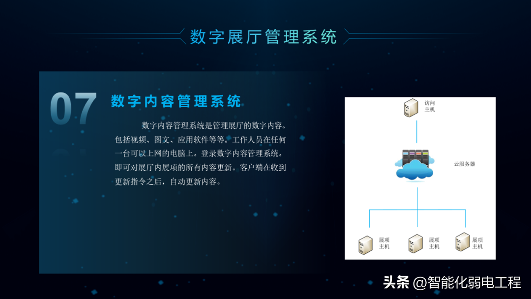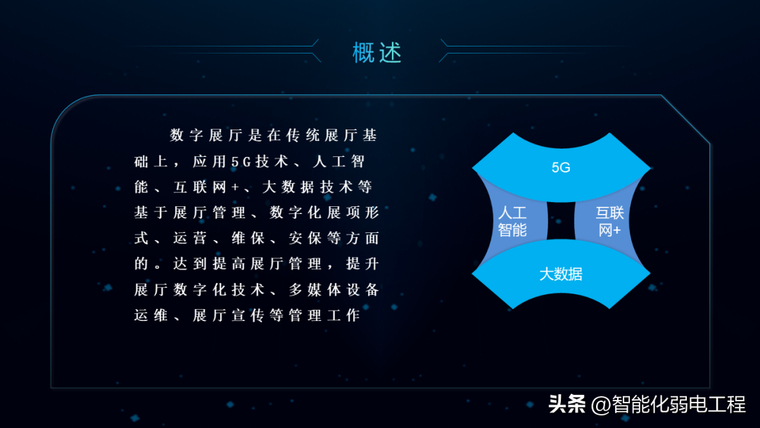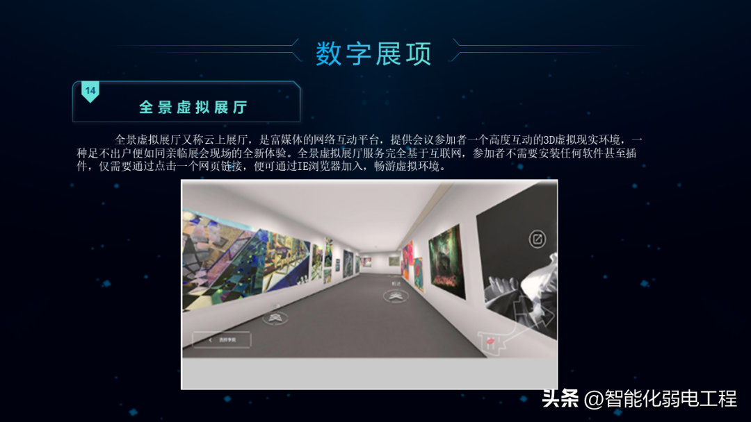 数字展厅是在传统展厅基础上,应用5G技术、人工智能、互联网+、大数据技术等基于展厅管理、数字化展项形式、运营、维保、安保等方面的。达到提高展厅管理,提升展厅数字化技术、多媒体设备运维、展厅宣传等管理工作