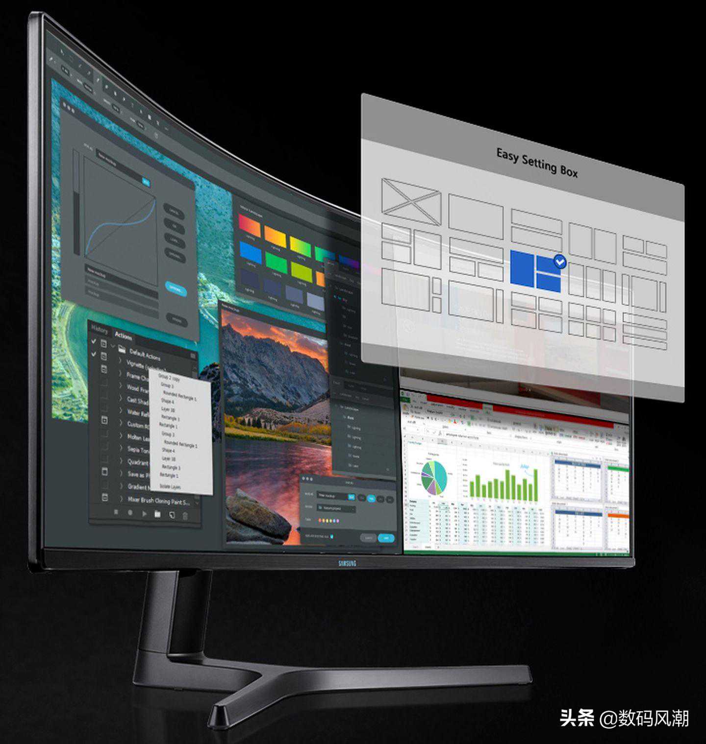 首先是分辨率,2K显示器是目前市面上更主流的产品,办公娱乐可攻可受的最佳选择。关于2K显示器与1080P显示器(同尺寸)之间的画面清晰度对比,我相信大家已经看过不少。而我要提醒的是,除了PPI的提升,显示内容较后者多出的77%更直观不易忽视。再加上对于性能的综合性考量,除非有高分屏工作的需求,2K怎么样都是要比1080P和4K显示器更现实的落地需求。